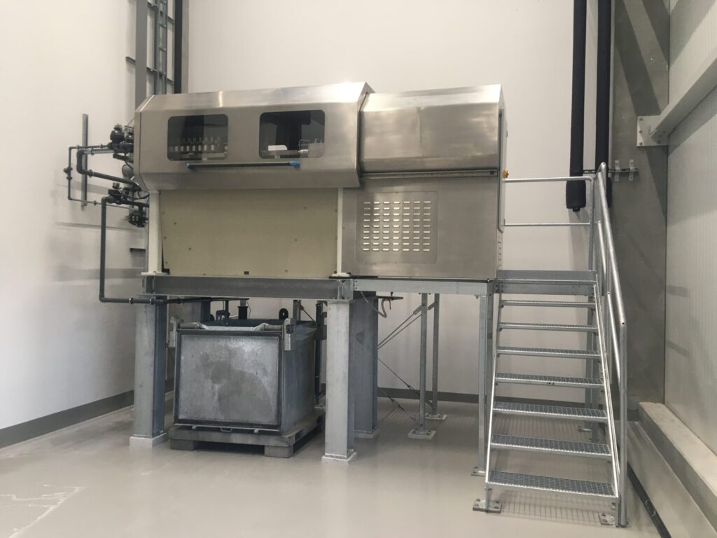 Die Filtertuch Waschanlage ermöglicht eine reproduzierbare und vollautomatische Reinigung der Filtertücher. Der Waschwagen ist oberhalb des Plattenpakets positioniert und reinigt jedes Filtertuch gezielt über einen Düsenstock.